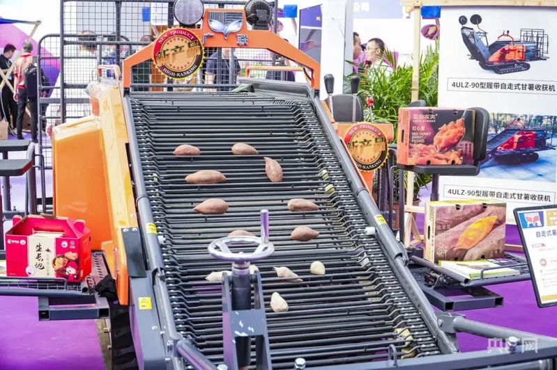 广东薯业全产业链成果展展示新产品——自走式薯类联合收获机(央广网发 主办方供图)