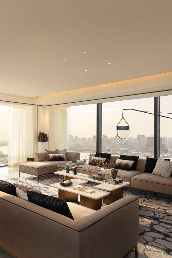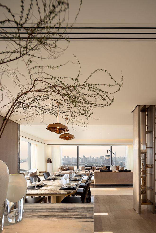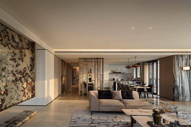 米色石材为主调,镶嵌典藏级老虎玉大理石,点缀古铜色现代海派艺术感灯器,整体呈现出百年海派的贵雅气质。✅海上·清和玺售楼处电话:✅︎✅︎✅